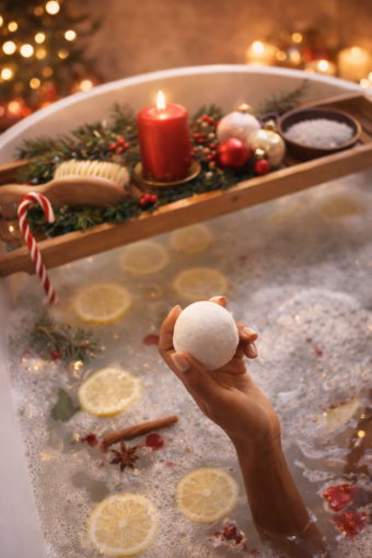 Wähle eine Playlist mit ruhigen Klavierklängen oder sanften Weihnachtsliedern ohne Text. Lass warmes Wasser einlaufen. Gib deine Öl-Mischung hinein. Berühre mit der Hand im Wasser – bewusst. Bevor du einsteigst, lege eine Hand auf dein Herz und frage dich: